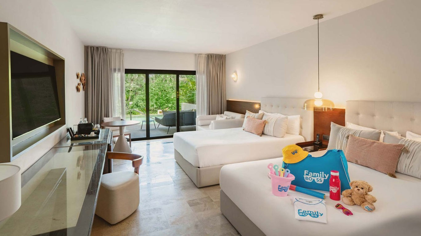 Family Selection Junior Suite Swim Up – Grand Palladium Kantenah Resort & Spa - Experience the beauty of the Mayan Riviera as you step directly from your suite into the swim-up pool, or unwind on your private terrace complete with a Balinese bed. This bright and spacious suite features a hydromassage bath with shower, a cozy living room with a sofa bed, and a furnished terrace for relaxing moments outdoors. For your comfort, the room is available with either one king bed or two double beds, and we’ll do our best to accommodate your preference.